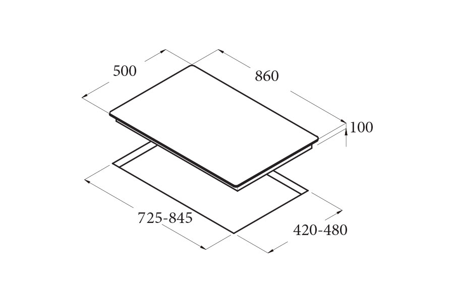 Kích thước bề mặt: 860 x 500 mm