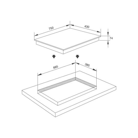 • Kích thước bếp: W750 x D430 x H74mm