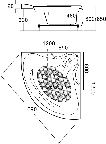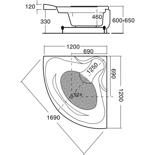 Bản vẽ kĩ thuật của bồn tắm góc Euroca EU3-1200