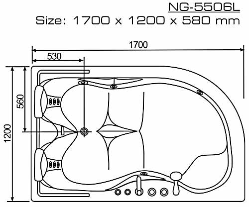 Bản vẽ kĩ thuật bồn massage Nofer NG-5506L