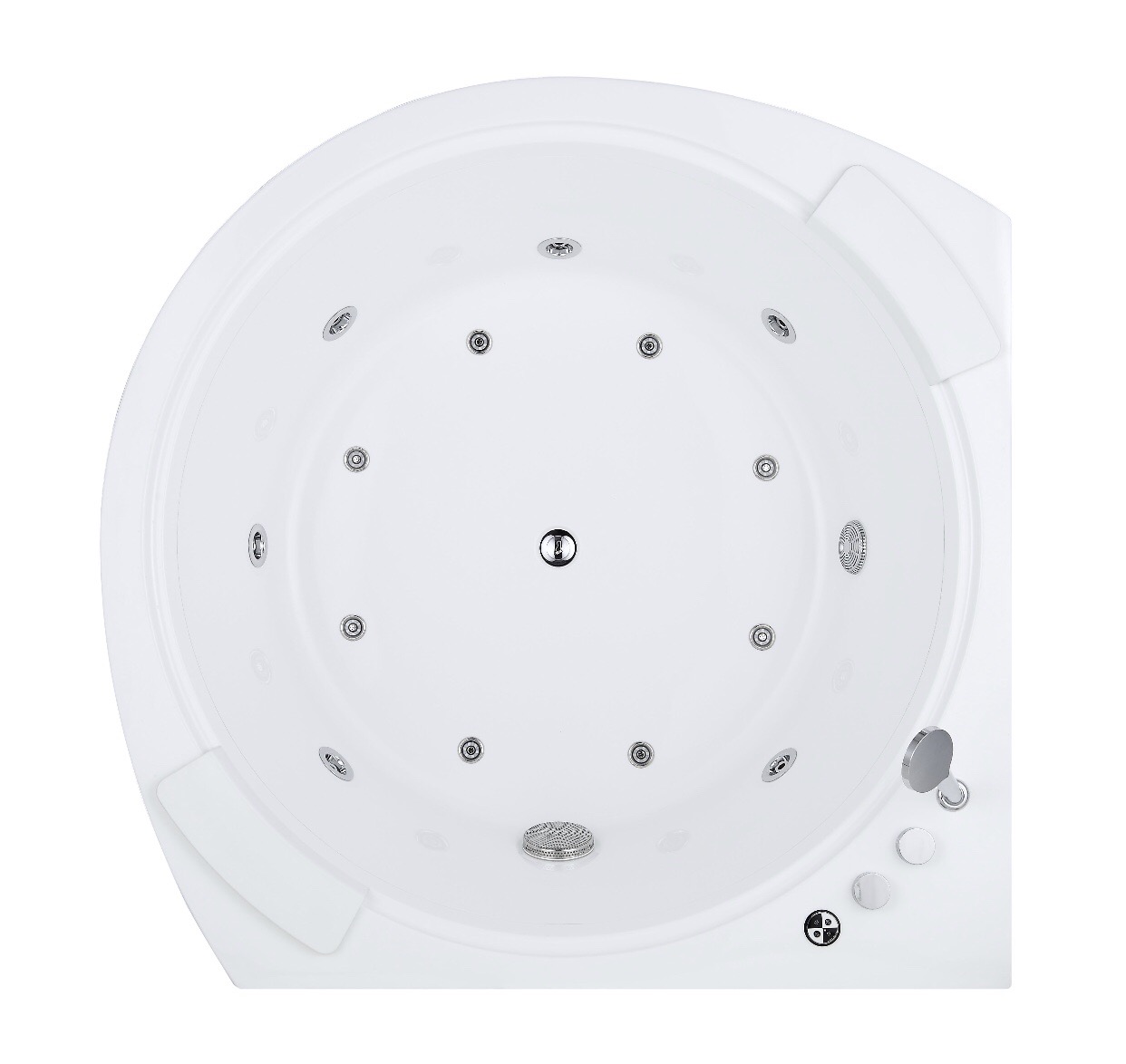 Trên thành bồn tắm massage có vòi sen tay , nút điều chỉnh hệ thống nóng lạnh của sen và chế độ bật vòi sen. Núm bảng điều khiển được lắp nổi trên thành bồn với các chức năng như sủi, sục, điều chỉnh hệ thống thác nước.