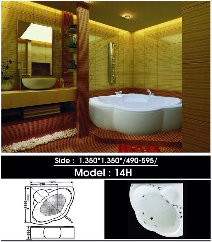 - Bồn tắm massage Việt Mỹ 14H có kích thước lớn, kiểu dáng góc thích hợp với những góc trống của những không gian phòng tắm rộng, bồn tắm massage Việt Mỹ 14H có kích thước là: 1350 * 1350 * (490-595) mm rất rộng rãi cho một người tắm. Bồn tắm massage Việt Mỹ 14H là bồn tắm có chân yếm với chất liệu thân vỏ làm bằng từ nhiều chất liệu khác nhau như: Acrylic, Ack, Galaxy hoặc Granite, đây là những loại chất liệu chuyên dụng cho bồn tắm và có khả năng chống bám bẩn, chống trầy xước dễ dàng lau chùi và vệ sinh. Với chất liệu nhập khẩu độ bền cao nên riêng phần thân vỏ của bồn tắm massage Việt Mỹ 14H được bảo hành dài hạn lên đến 2 năm.