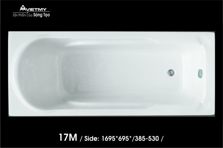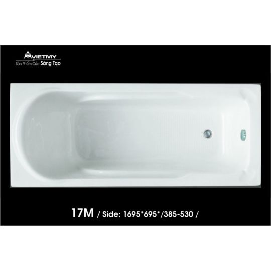- Bồn tắm massage Việt Mỹ 17M sản xuất trên dây chuyền công nghệ nên có chất lượng đảm bảo và giá cả hợp lý. Bồn tắm massage Việt Mỹ 17M có kiểu dáng hình chữ nhật với kích thước phổ thông nên có thể lắp đặt được với mọi không gian phòng tắm khác nhau. Kích thước của bồn tắm Việt Mỹ là 1695x695x (385-530) mm, với kích thước này thì bạn có thể nằm tắm ngâm một cách thoải mái mà không lo trật trội.