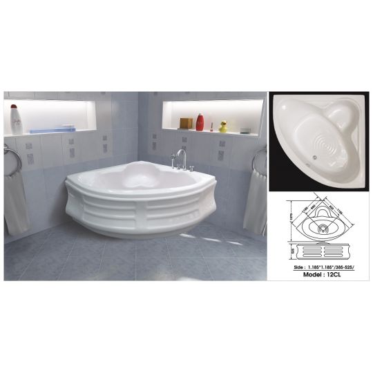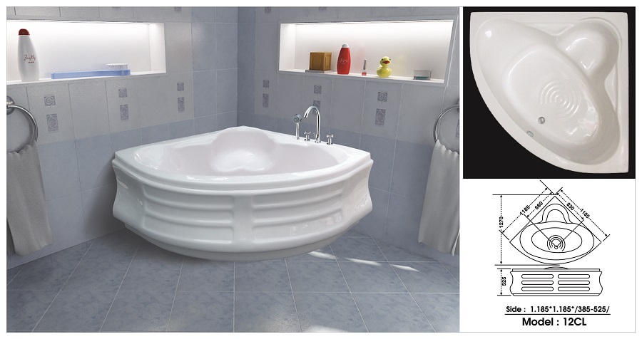 Sản phẩm bồn tắm xây Việt Mỹ 12CL có kích thước là (1185 x 1185 x 385/525) mm, với kích thước này bạn dễ dàng lựa chọn hơn khi bố trí không gian nhà tắm nhỏ hẹp mà vẫn đảm bảo được vị trí cho thiết bị khác. Sản phẩm được trang bị đầy đủ 4 loại chất liệu khác nhau: Acrylic, ACK, Galaxy, Granite.