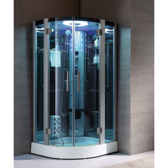 Cabin xông hơi đa năng, kính cường lực 6mm màu xanh. Phần đế chất liệu nhựa Acrylic cao cấp. Khung bao quanh toàn bộ là hợp kim nhôm