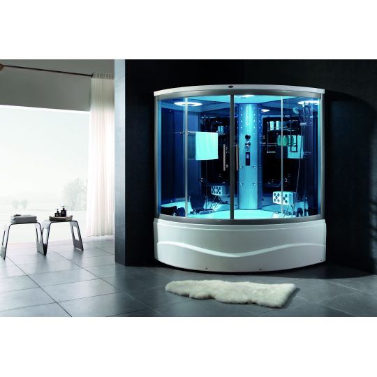 Cabin xông hơi đa năng, kính cường lực 6mm màu xanh. Phần đế chất liệu nhựa Acrylic cao cấp. Khung bao quanh toàn bộ là hợp kim nhôm