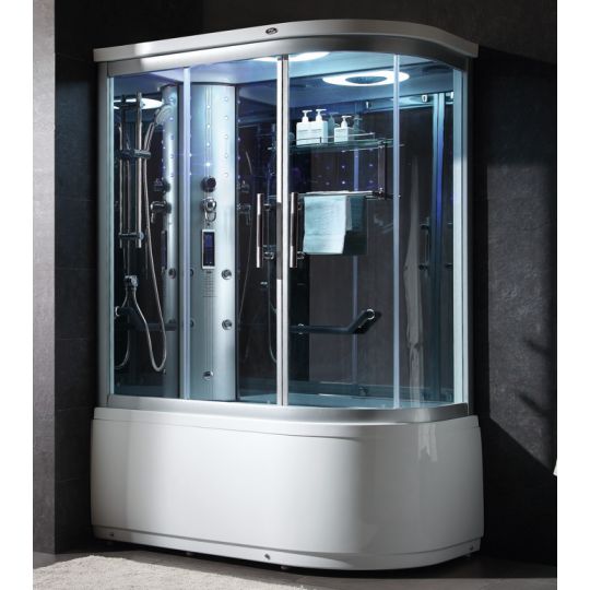 Cabin xông hơi đa năng, kính cường lực 6mm màu xanh. Phần đế chất liệu nhựa Acrylic cao cấp. Khung bao quanh toàn bộ là hợp kim nhôm