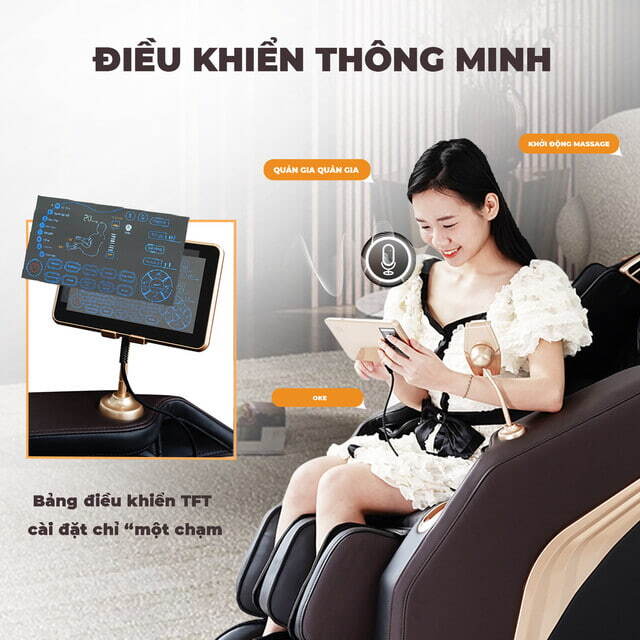 Với công nghệ điều khiển giọng nói tiếng Việt thông minh bạn có thể tận hưởng trọn vẹn những khoảnh khắc thư giãn cực đỉnh của ghế mà không cần “động tay” vào bất cứ thao tác cài đặt nào. Bạn chỉ cần ngồi một chỗ “ra lệnh” để ghế phục tùng như ý muốn.
