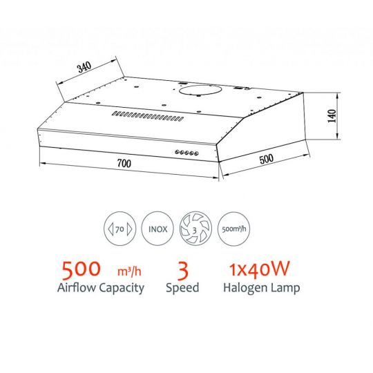 - Kích thước: 700 mm