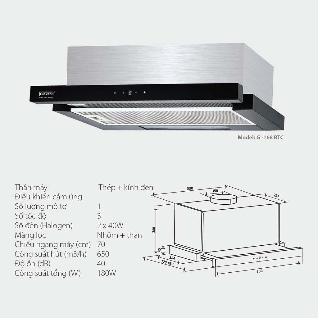Sau này hãy cùng Bếp Viethome tìm hiểu sản phẩm máy hút mùi Giovani G-168 BTC này nhé !