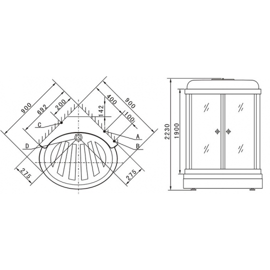 Bản vẽ kĩ thuật phòng xông hơi Appollo A-0812