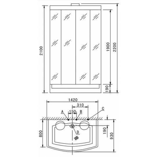Kích thước : 1420 x 930 x 2160 mm