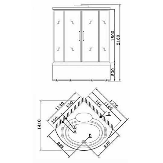 + Kích thước phòng xông hơi Appollo TS- 1235 : 1235 x 1235 x 2160 mm