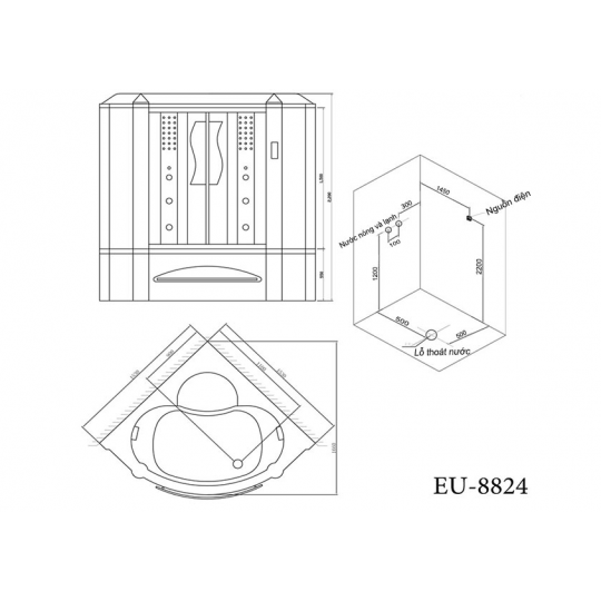 Thông số kỹ thuật của phòng xông hơi Euroking EU-8824 :