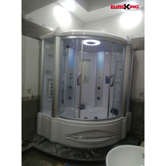 Phòng xông hơi giá rẻ Euroking EU-8824 có kích thước: 1500x1500x2200mm thuộc loại phòng xông hơi kích thước lớn, được trang bị đầy đủ tính năng của một phòng xông hơi ướt cao cấp. Tính năng nổi bật như: xông hơi ướt, massage lưng, massage chân, bộ sen chia tắm nóng lạnh, nằm ngâm thư giãn massage. Toàn bộ bên ngoài được bao bọc bởi khung hợp kim nhôm chắc chắn, kính chắn là kính cường lực, đế bồn là loại đế Acrylic cao cấp.