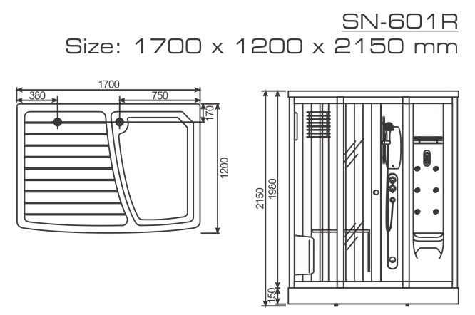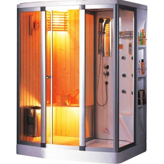 Với kích thước: 1700x 1200 x 2150 mm và đặt ở góc phòng hoặc cạnh tường, đây là loại phòng xông hơi có kích thước lớn phù hợp với lắp đặt trong không gian phòng tắm rộng.