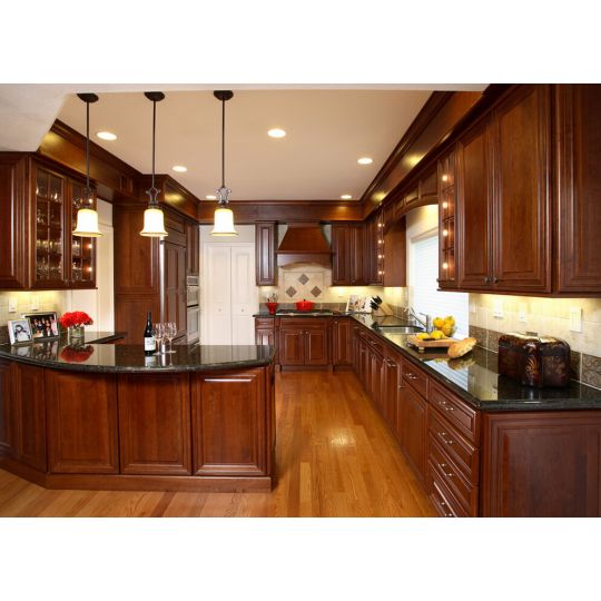 - Tủ bếp biệt thự gỗ hương chữ L