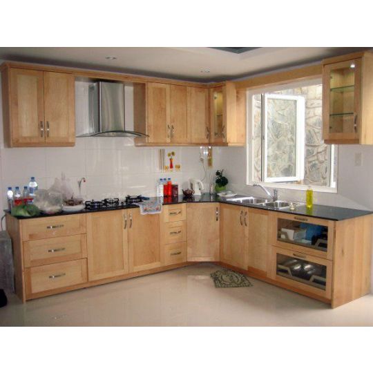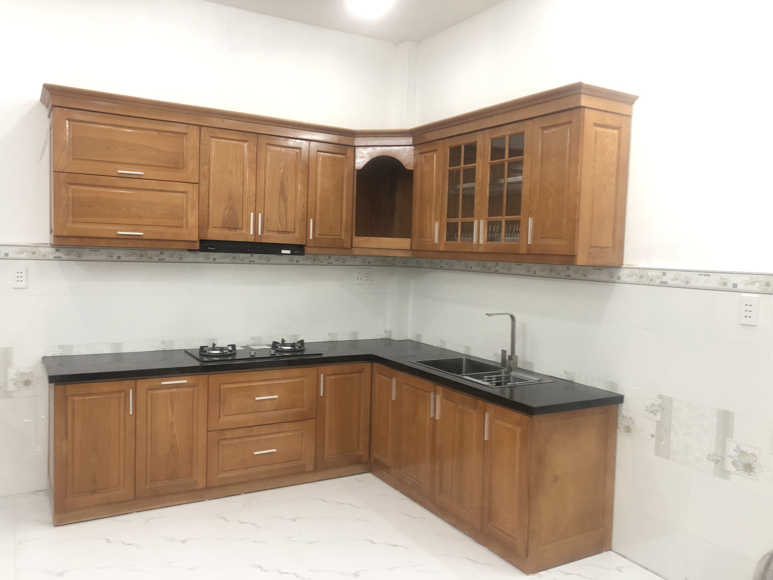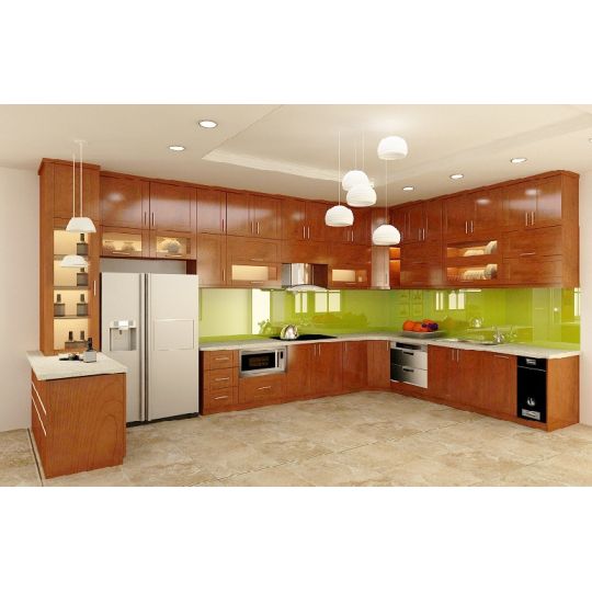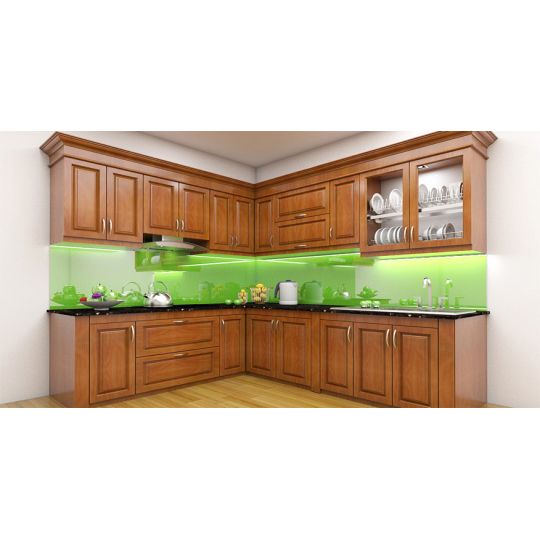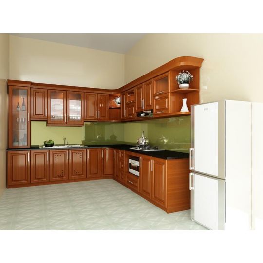 - Tủ bếp cao cấp gỗ xoan đào chữ L