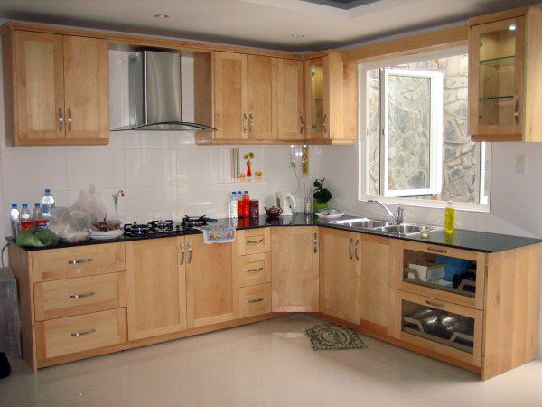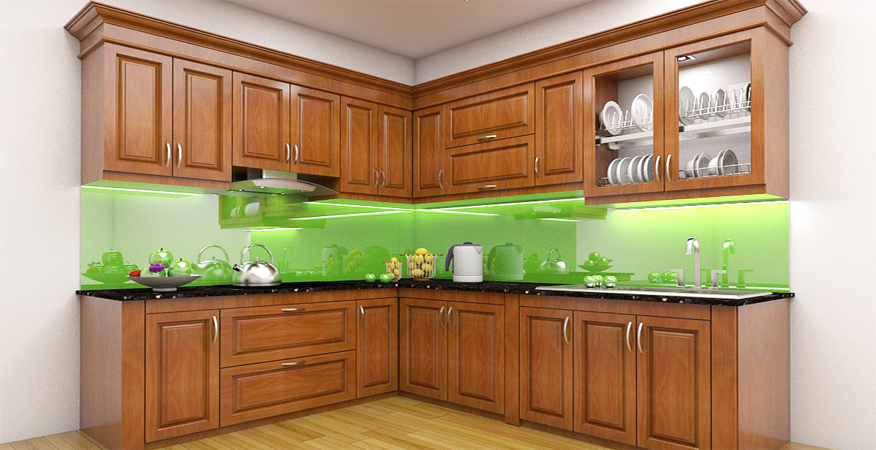 Hình mẫu tủ bếp gỗ xoan đào chữ L