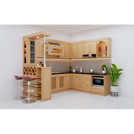 TỦ BẾP CHUNG CƯ GỖ SỒI NGA QUẦY BAR | BẾP VIỆT HOME