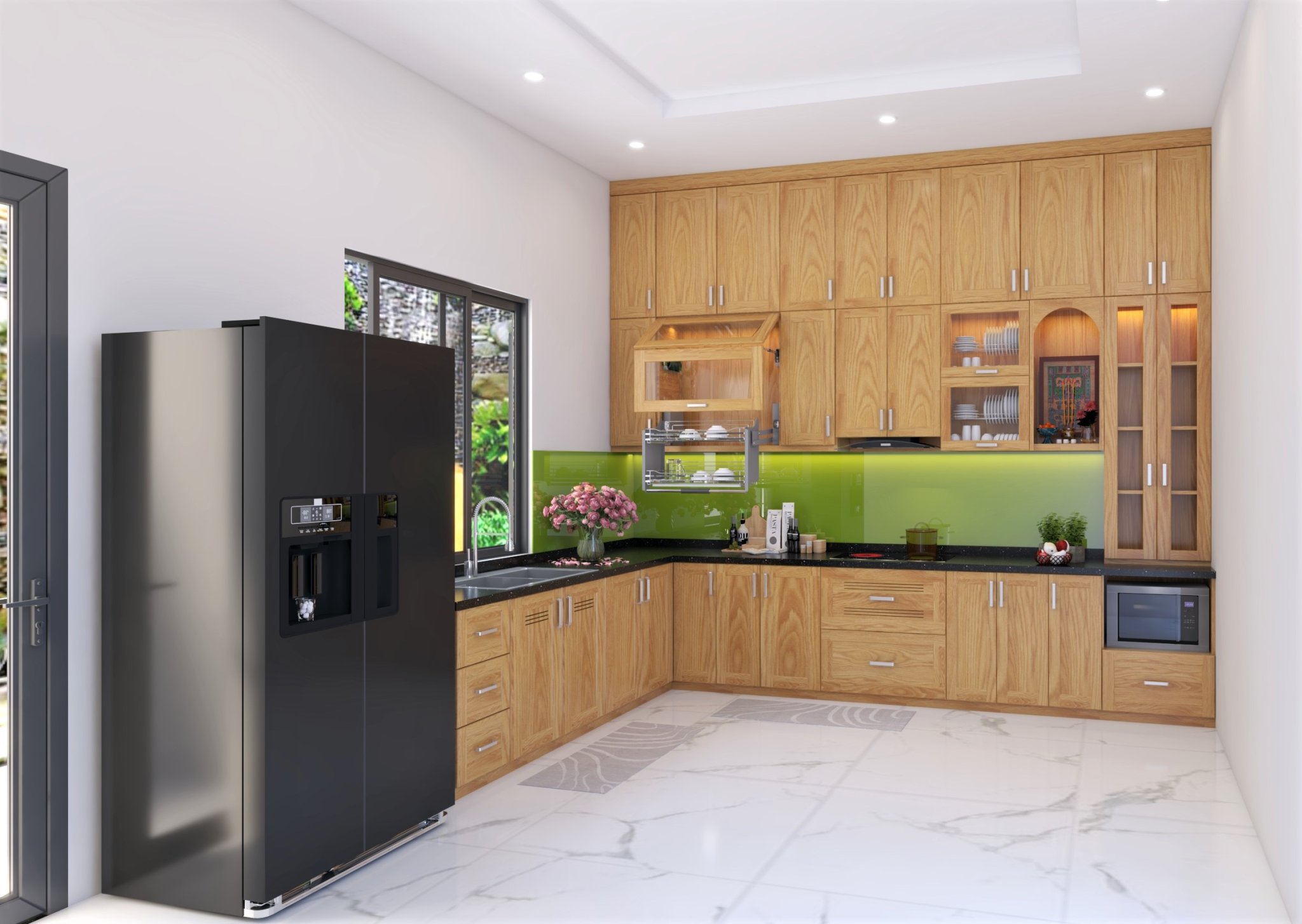 TỦ BẾP CHUNG CƯ GỖ XOAN ĐÀO CHỮ L | BẾP VIỆT HOME