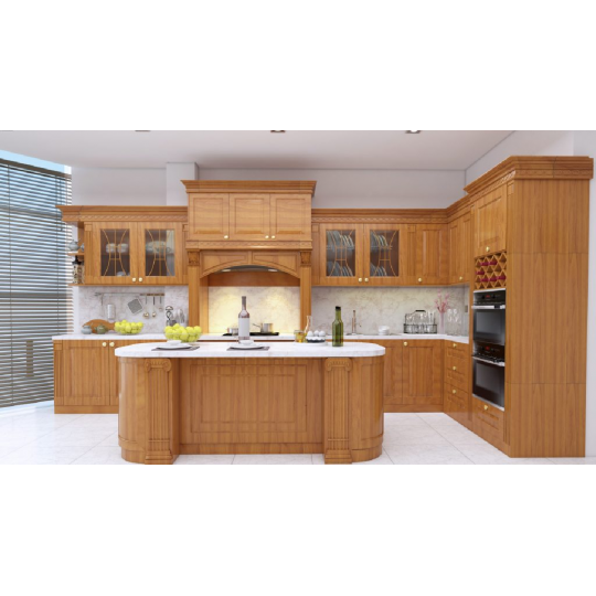 - Tủ bếp cổ điển gỗ tần bì có bàn đảo