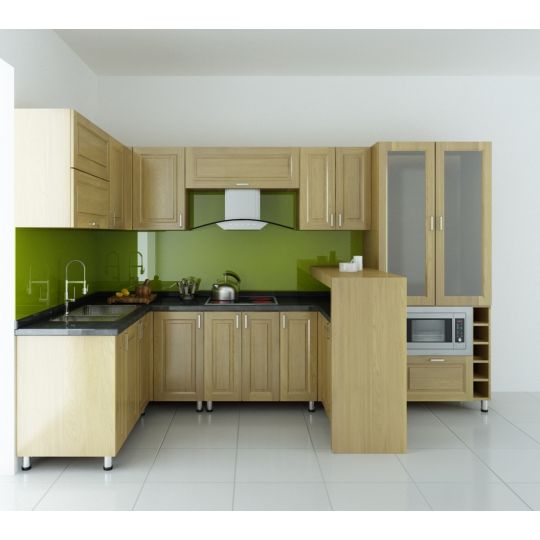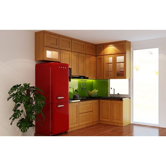 - Tủ bếp giá rẻ gỗ sồi Nga chữ G