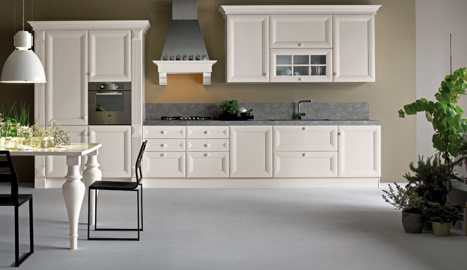 Hình mẫu tủ bếp gỗ sơn màu tông trắng chữ I