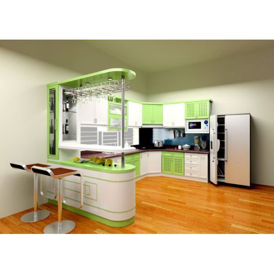 - Tủ bếp giá rẻ gỗ sơn màu quầy bar