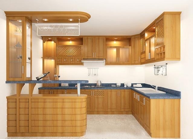 - Tủ bếp gỗ laminate quầy bar giá rẻ