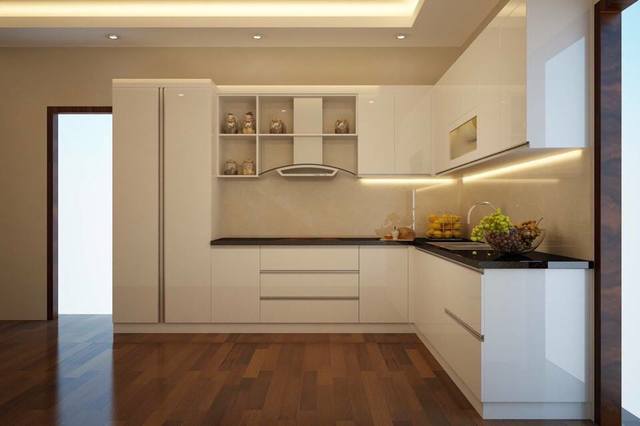 Hình mẫu tủ bếp gỗ Melamine chữ L