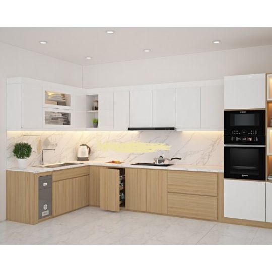 - Giá thành phải chăng: So với tủ bếp gỗ tự nhiên, tủ bếp gỗ Melamine có chi phí thấp hơn, phù hợp với nhiều gia đình muốn có một giải pháp nội thất đẹp mắt nhưng tiết kiệm.