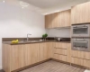 - Đa dạng về màu sắc và hoa văn: Lớp phủ Melamine có thể tái hiện nhiều kiểu hoa văn, từ vân gỗ tự nhiên đến màu đơn sắc hoặc các họa tiết hiện đại, giúp tủ bếp phù hợp với nhiều phong cách nội thất khác nhau.