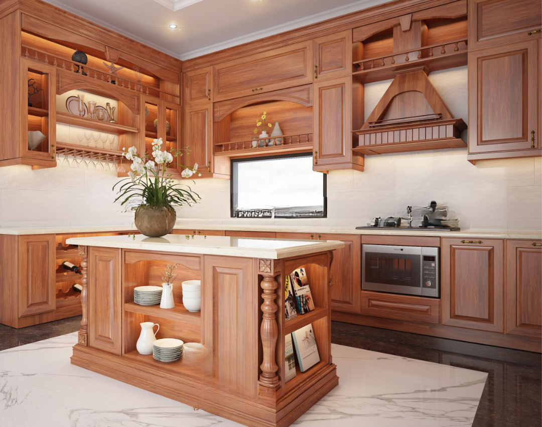 >> Tủ Bếp Gỗ Xoan Đào: Sang Trọng Và Bền Bỉ