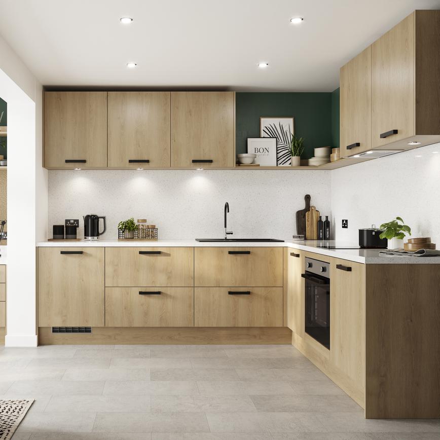 Hình mẫu tủ bếp gỗ sồi Mỹ chữ L