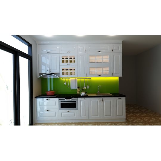 - Chiều cao tổng tủ bếp (tủ dưới + tủ trên) : 2100 mm - 2250mm (bao gồm cả phào, chỉ trang trí)