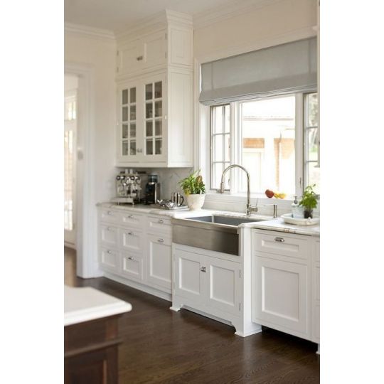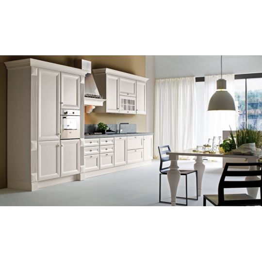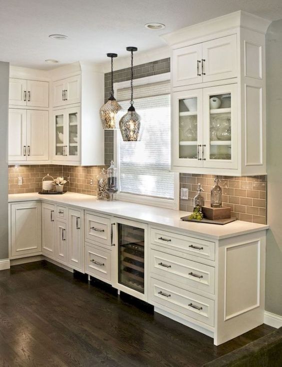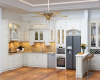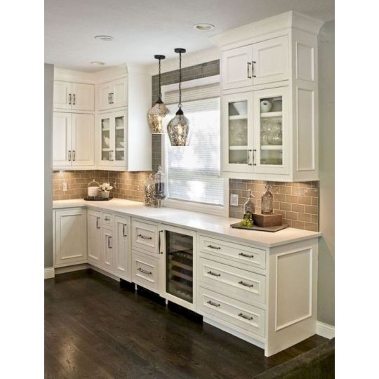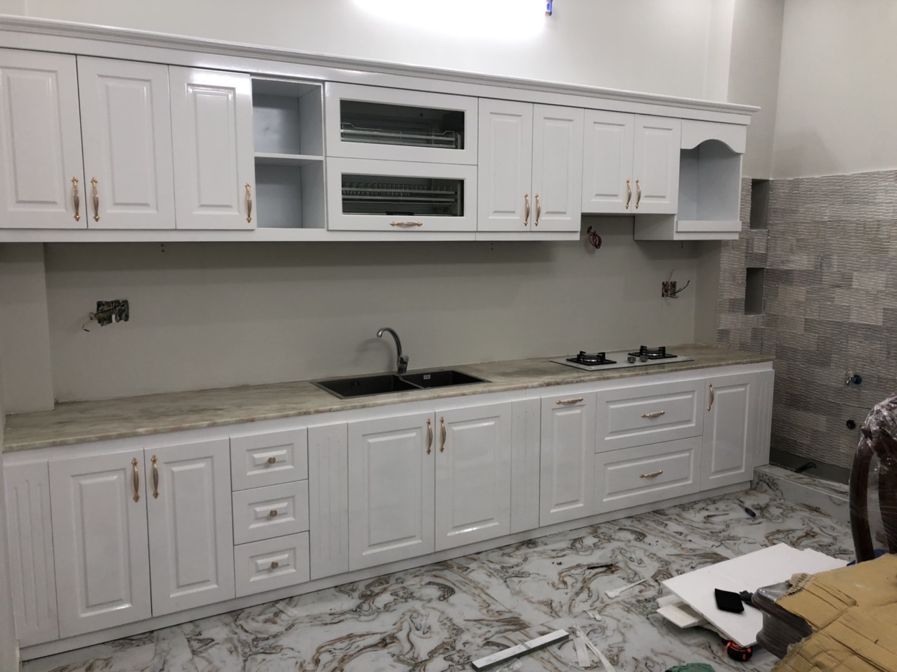 Hình mẫu tủ bếp biệt thự gỗ sơn màu tông trắng chữ I