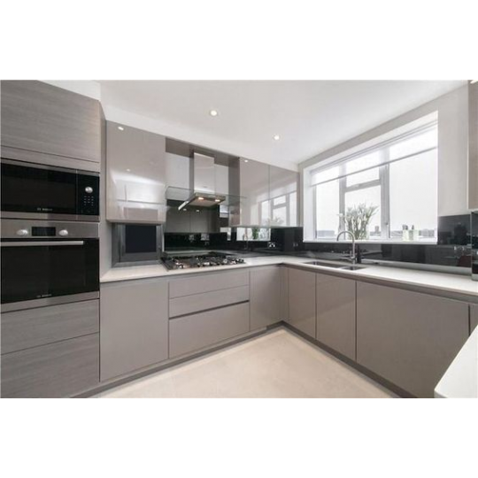 - Tủ bếp nhà phố gỗ HDF chữ L